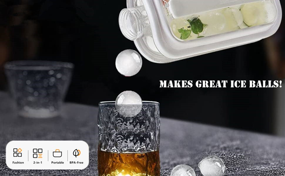 - 【Newest 2-in-1 ice cube maker】: It's not only a ice cube trays ! also a kettle that you can drunk any drinks directly.eays to making 17 full ice balls at a time, convenient to use and clean, with sealed bottle cap to prevent odor . Compared with traditional ice tray, it can prevent the hockey puck from being scattered, supports novel 3 differents usage methods, BPA-free, you can enjoy the coolness at home anytime